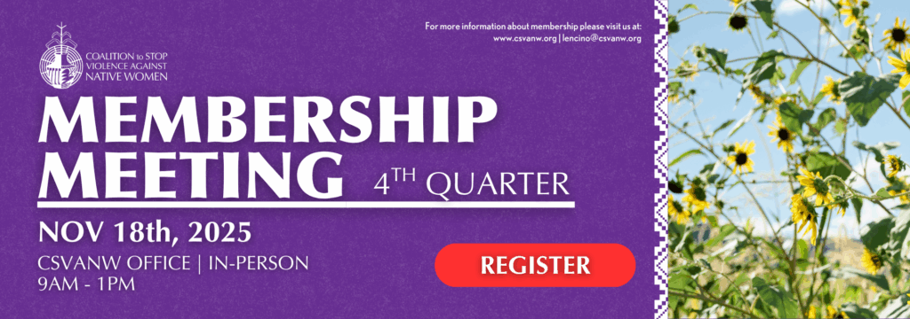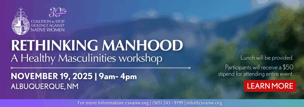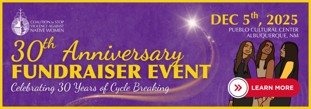 Organized in 1995 by three founding Native women, Peggy Bird (Kewa), Darlene Correa (Laguna Pueblo), and Genne James (Navajo), the Coalition to Stop Violence Against Native Women (CSVANW) was created to provide support to other Native advocates working in domestic violence, sexual assault, dating violence, stalking, and sex trafficking in New Mexico’s tribal communities. Read More >>>