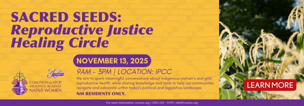 Organized in 1995 by three founding Native women, Peggy Bird (Kewa), Darlene Correa (Laguna Pueblo), and Genne James (Navajo), the Coalition to Stop Violence Against Native Women (CSVANW) was created to provide support to other Native advocates working in domestic violence, sexual assault, dating violence, stalking, and sex trafficking in New Mexico’s tribal communities. Read More >>>